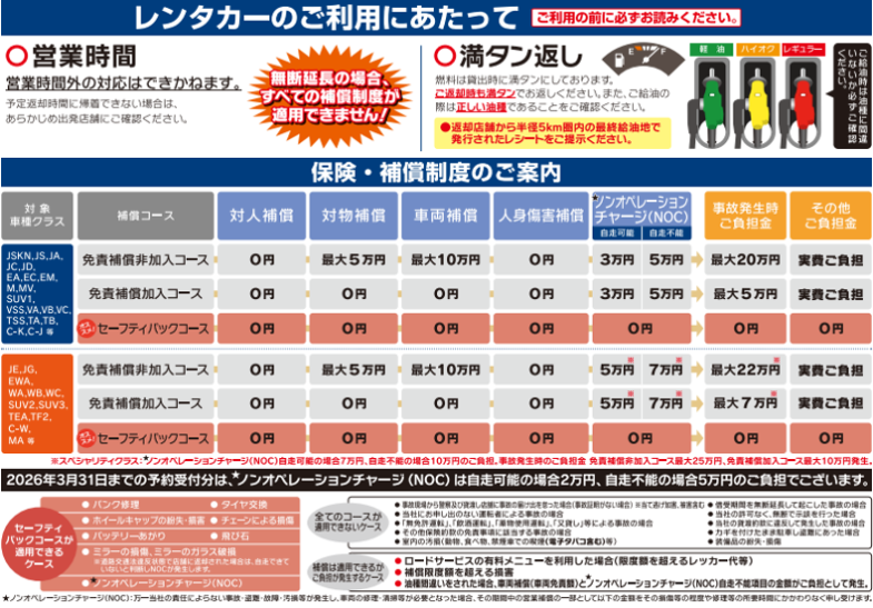 ● レンタカーの保険内容