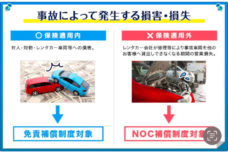 | NOC詳細内容 | *NOC詳細 ●レンタカーで自走し予定の店舗に返却された場合 50,000円 ●レンタカーで自走できず予定の店舗に返却されたなかった場合 100,000円 |